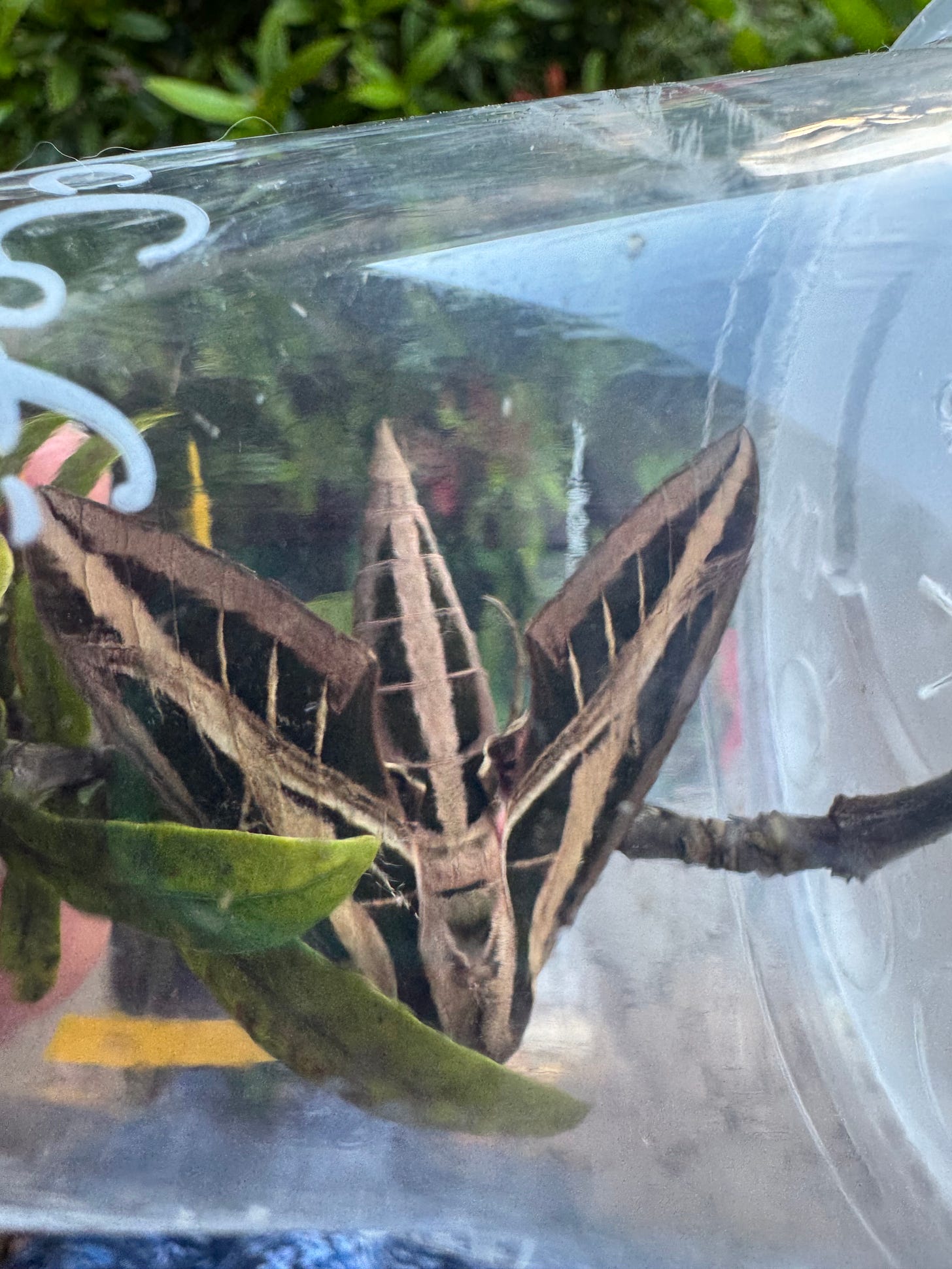 From the back yard to the front porch, Phoenix studied a banded sphinx moth (Eumorpha fasciatus). Its intricate wing patterns became an art exercise, its life cycle a biology lesson, and its migratory path a geography detour. A friend later shared a pair of Southern Two-Striped Walkingsticks (Anisomorpha buprestoides). Watching their unusual mating dance gave us an opening into discussions about insect defense mechanisms, evolution, and even a little poetry inspired by their strange, synchronized sway.