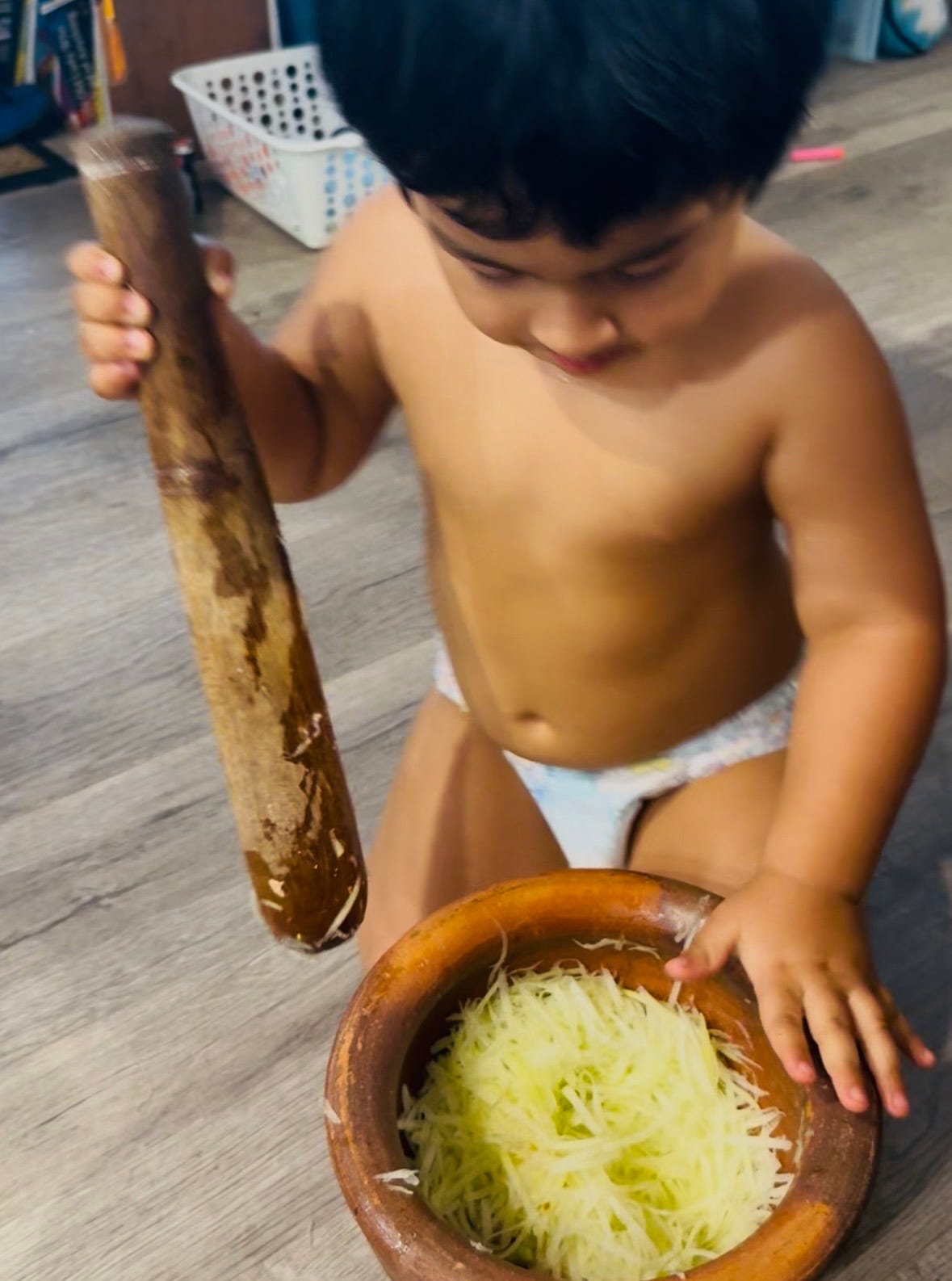 Learning doesn’t end outdoors. In the kitchen, we’ve cooked traditional Isaan dishes—like Yum Tang Goong Haeng with dried shrimp—and Mexican recipes honoring Phoenix and Mako’s other ancestral roots. Every step was a lesson: measuring ingredients (math), reading recipes and family stories (language arts), exploring spice trade routes and cultural history (social studies), and experimenting with flavor and presentation (science and art combined).